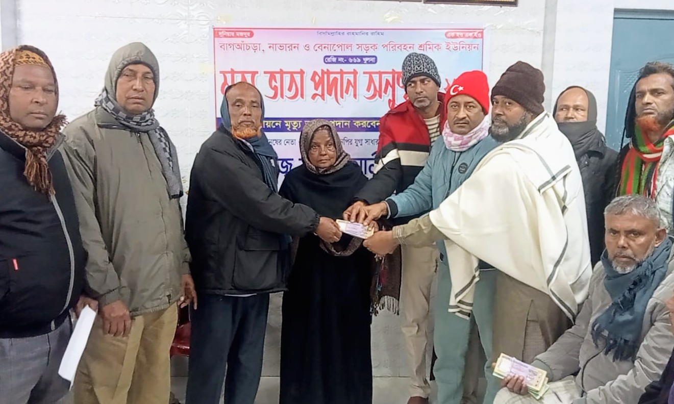 যশোরের বাগআঁচড়া-নাভারণ ও বেনাপোল সড়ক পরিবহন শ্রমিক ইউনিয়ন (রেজি নং-৬৬৯, খুলনা)-এর উদ্যোগে ছয়জন মৃত মোটর শ্রমিকের পরিবারের মাঝে মরণোত্তর ভাতা প্রদান করা হয়েছে। এ সময় প্রত্যেক পরিবারকে ৩৫ হাজার টাকা করে মোট ২ লাখ ১০ হাজার টাকা প্রদান করা হয়।