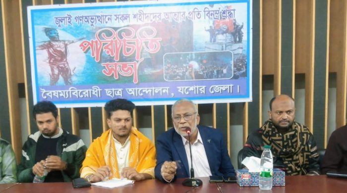 আহবান নিউজ : বৈষম্য বিরোধী ছাত্র আন্দোলন যশোর জেলা শাখার পরিচিতি ও মতবিনিময় সভা অনুষ্ঠিত হয়েছে। শুক্রবার (৯ জানুয়ারি) প্রেসক্লাব যশোরে আয়োজিত এ সভা শহিদ বীর ওসমান হাদি এবং আপোষহীন